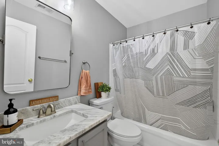 Upstairs, the primary suite offers two closets and an updated bathroom with quartz countertops and contemporary lighting and mirrors. Two additional bedrooms, a second full bathroom, and a convenient laundry area complete this level, providing ample space for family and guests.