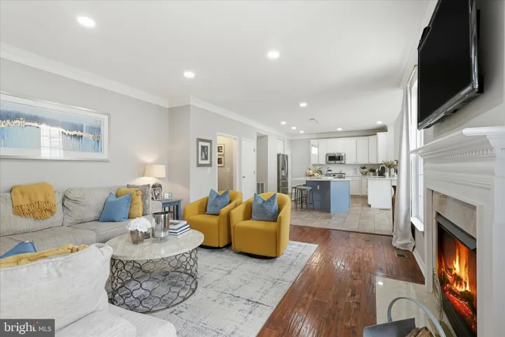 Welcome to a home that blends thoughtful upgrades with flexible living spaces. Engineered hardwood floors stretch across the family room, foyer, den, and the entire upper hallway and bedrooms, creating a seamless, warm feel. Recessed lighting complements natural light throughout the main level. The kitchen is the true centerpiece, with a beautiful Corian island that seats four comfortably, stainless-steel appliances including a 5-burner gas stove, and durable porcelain tile extending into the sunroom. The oversized sunroom windows illuminate the living areas and offer year-round enjoyment.