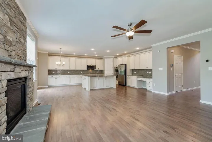 * Gourmet kitchen with upgraded cabinetry, stainless steel appliances, a generous center island, and ample storage.