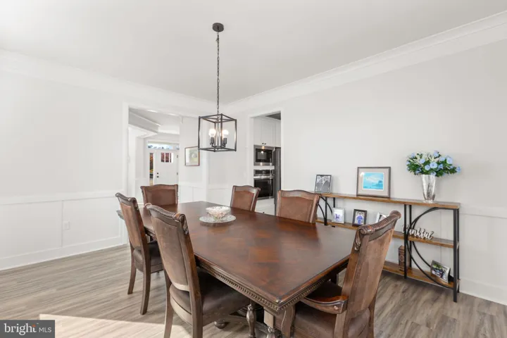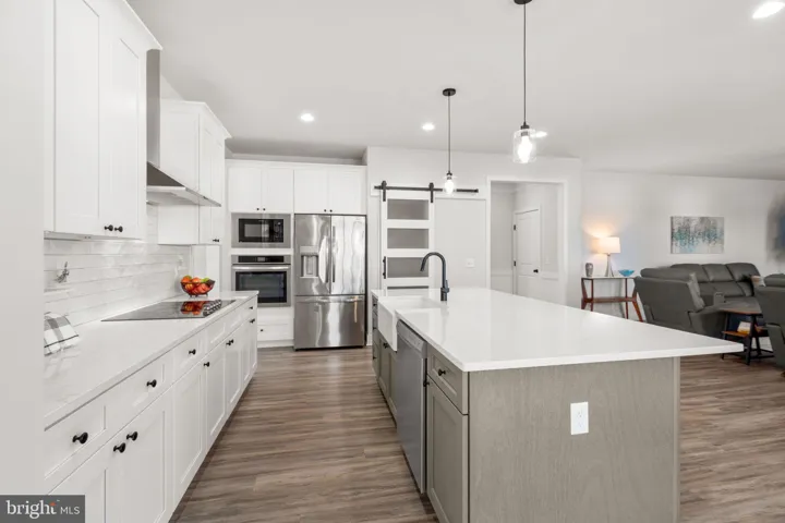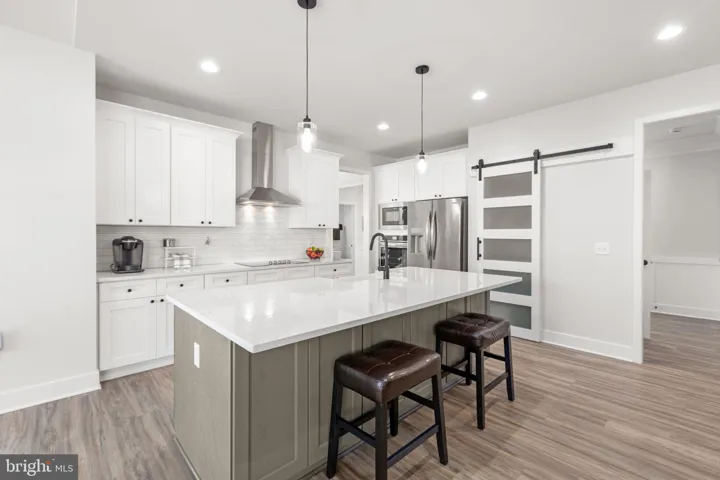At the heart of the home, the gourmet kitchen blends style and function with crisp white cabinetry, quartz countertops, and a timeless farmhouse sink. A sun-filled morning room extends naturally from the kitchen and opens onto a low-maintenance composite deck, perfect for taking in the peaceful surroundings.