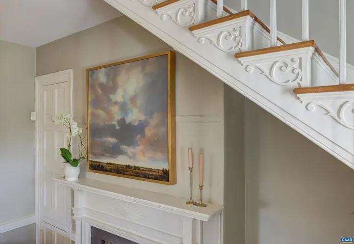 Bel Aire ? Elegant and timeless, this stately 1810 Federal-style residence on 100+/- acres blends historic detail & craftsmanship w/ contemporary livability. The gracious foyer opens to beautifully proportioned formal rooms ? living & dining rooms, complemented by an updated gourmet kitchen flowing seamlessly into a light-filled family room & screen porch overlooking the grounds, creating an inviting space for gathering & entertaining. The first floor guest suite with bath provides privacy & convenience. Upstairs includes a spacious primary bedroom, serene marble bath, additional bedroom & a handsome library. Third floor w/ bedroom, full bath, office or studio space offers abundant versatility. The English basement provides flexible space ideal for game/family room, fitness room, laundry with storage, plus a climate-controlled wine cellar. Throughout the incredible architectural details include heart pine floors, 12-foot ceilings, 8 fireplaces with hand-carved mantles, chair rails & paneled wainscoting. Outdoors enjoy firepit area, stone barn & grounds of open hayfields & woodlands w/ five miles of private walking trails & 3/4 mile Rivanna River frontage. Conservation easement candidate. Convenient to amenities & Univ of VA.,Soapstone Counter,White Cabinets,Fireplace in Basement,Fireplace in Bedroom,Fireplace in Dining Room,Fireplace in Foyer,Fireplace in Living Room,Fireplace in Master Bedroom,Fireplace in Study/Library