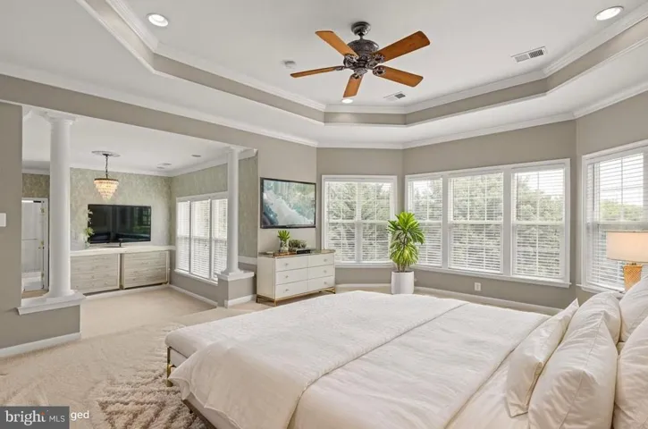 Luxurious primary suite offers two walk-in closets, custom built-ins, sitting area, and a newly renovated $40K spa bath with heated floors and dual-head frameless glass shower. Upper level includes 3 additional bedrooms including a junior primary suite and secondary bedrooms with Jack-and-Jill bathroom. The potential 5th bedroom is in the basement with an adjoining full bathroom.