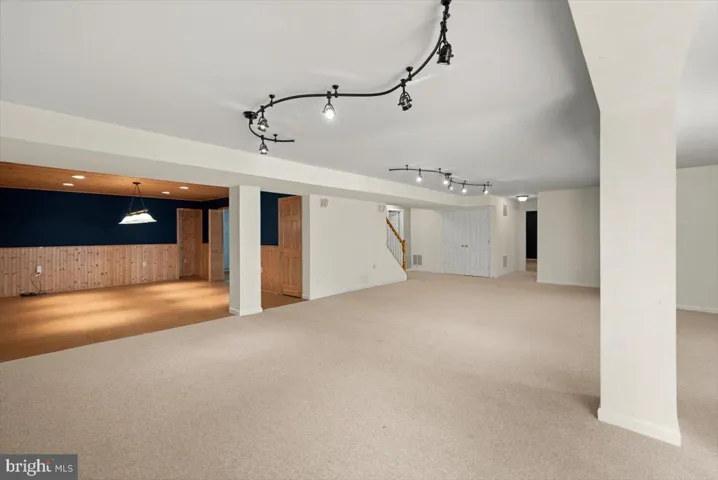 Finished walk-out basement with bay window, rec room, 5th BR/office, pool room with cork flooring, and semi-finished workout space. Mature landscaping creates natural privacy, plus upper deck and covered patio.