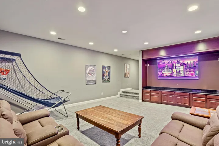 The lower level is built for entertainment and extended living, featuring two well-sized bedrooms and a full bath with a beautifully tiled rain shower. A large movie theater room, game room, and stylish bar create the perfect setup for gatherings and relaxation, while upgraded systems throughout the home—including copper plumbing, three-zone HVAC, and LED lighting—enhance comfort and efficiency.