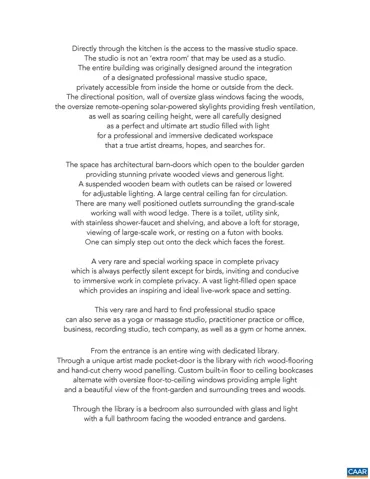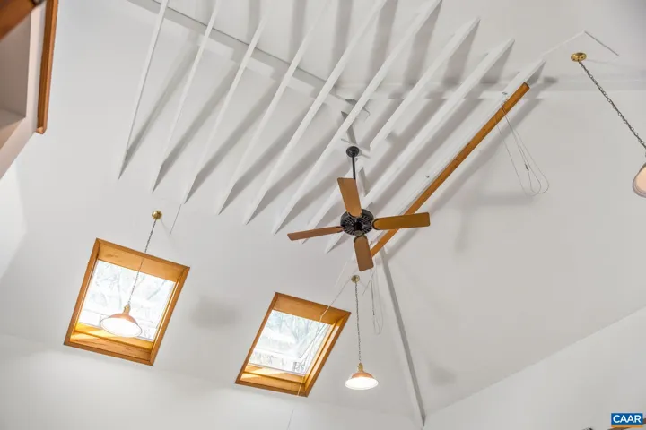 WOODHAVEN ? a rare Mid-Century Modern sanctuary shaped around Light, Space, and Spirit. Centered on a dramatic two-story art studio, this one-of-a-kind home offers an open floor plan with soaring ceilings, a sun-drenched loft wrapped in windows, and solar-powered remote skylights that bathe the space in natural inspiration. A custom oversized fireplace and towering two-story brick chimney anchor the living, dining, and creative areas into one seamless experience where modern sophistication meets the warmth of organic wood and stone. Hand-cut wood floors and terra cotta tiles with geothermal radiant heat set a grounded, inviting tone, complemented by a handcrafted cherry-paneled library. Recent upgrades include a new roof with copper ducts and vents, Trane 5-ton heat pump, Norwegian pine deck, loft patio and floating front porch, full exterior stain, complete interior paint, refreshed primary and basement baths, and septic inspection. Perfect for artists, designers, wellness practitioners, photographers, or any home-based professional seeking abundant natural light and true creative freedom. Modern Woodhaven is not just a home?it?s a retreat, a studio, and a living work of art. (see documents for full details on Woodhaven),Wood Cabinets,Fireplace in Great Room
