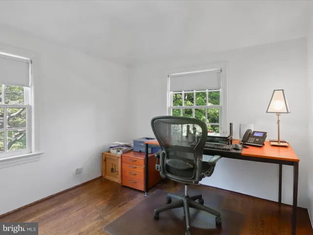 Upstairs, the primary bedroom features its own well-appointed bath. A serene sunroom at the rear of the home invites year-round enjoyment, overlooking a peaceful, private yard. The lower level adds meaningful flexibility with a dedicated office or guest space, complete with a full bath.