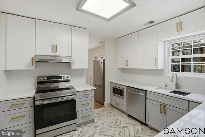 Step inside to a bright main level featuring new Remington White Oak wire-brushed engineered hardwood flooring, fresh paint, and designer chandeliers that create a warm, upscale feel. The fully renovated kitchen offers soft-close shaker cabinets, quartz countertops, a full-height tile backsplash, and nearly all-new stainless steel appliances (purchased within the last year, except the dryer)—truly move-in ready. Bathrooms have been stylishly upgraded with quality tile (including herringbone details) and modern fixtures.