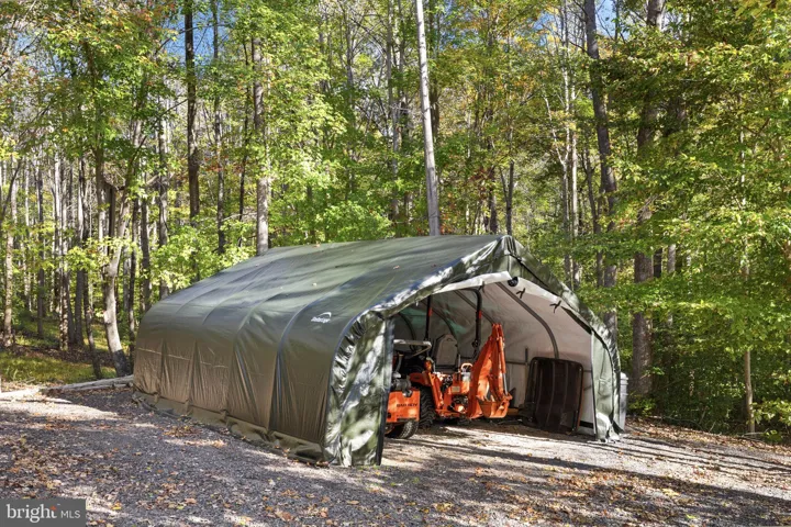 a bonus canvas covered lawn equipment storage shed, which sits camouflaged off to the side.