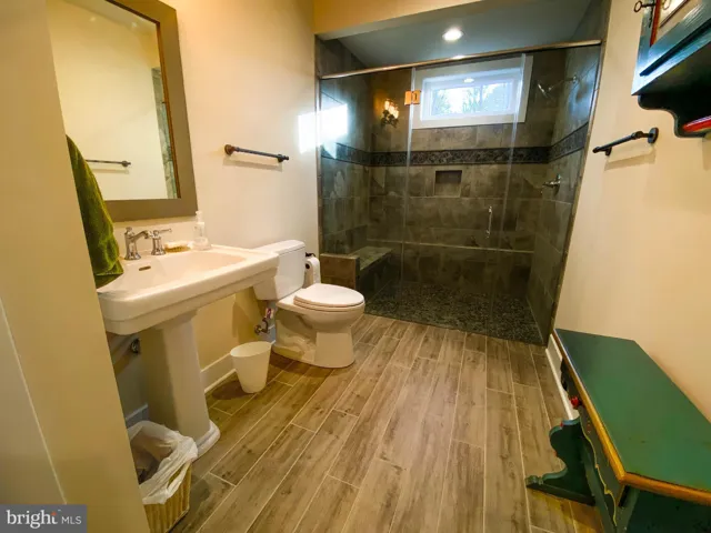 bathroom, heated tile floor, walk-in shower, large jacuzzi tub, and a bidet ensuring a private oasis for relaxation. Venture downstairs to the finished basement, which offers another bedroom and complete bath with large walk-in shower. There is a second kitchen and ample storage space. Around the corner is an underground garage and workshop. With a walkout level and direct access to the backyard, this area is perfect for entertaining or creating a personal sanctuary. Outside, the property spans over 7 acres, featuring beautifully landscaped grounds that back to serene trees and a picturesque pond. Enjoy the tranquility of nature from your screened porch or expansive deck, perfect for summer barbecues or quiet evenings under the stars. The in-ground saltwater pool, surrounded by a fenced area, provides a refreshing escape during warm months. Additional exterior features include a BBQ grill, exterior spotlights for added security, and a three-car-attached garage, providing ample parking and storage. The