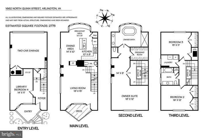 Charming, elegant light-filled end-unit contemporary townhome in the desirable Brompton of Rosslyn community. Features approx. 2,775 sq. ft. on four levels with high ceilings throughout. The modern open kitchen includes stainless steel appliances and a large bay window. Spacious living room with three-sided fireplace and access to a private deck. Full-floor primary master suite with walk-in closet and en-suite bath. Upper level offers two additional bedrooms. Entry level includes a versatile fourth bedroom or office and an attached two-car rear-entry garage. Unbeatable location, steps to dining and shopping, situated between two Metro stations, and minutes to airports, major commuter routes, and all that Arlington has to offer.