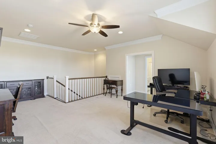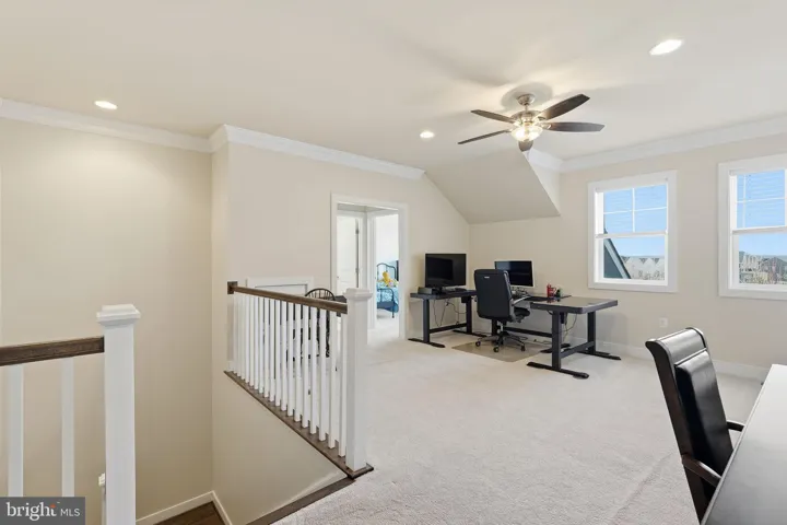 Additional upgrades and improvements include Elfa custom closets throughout, crown moulding through the main level and upstairs loft, ceiling fans (x5), ducts cleaned (2025), and the driveway resealed (2025).