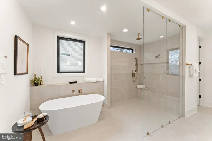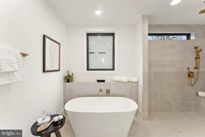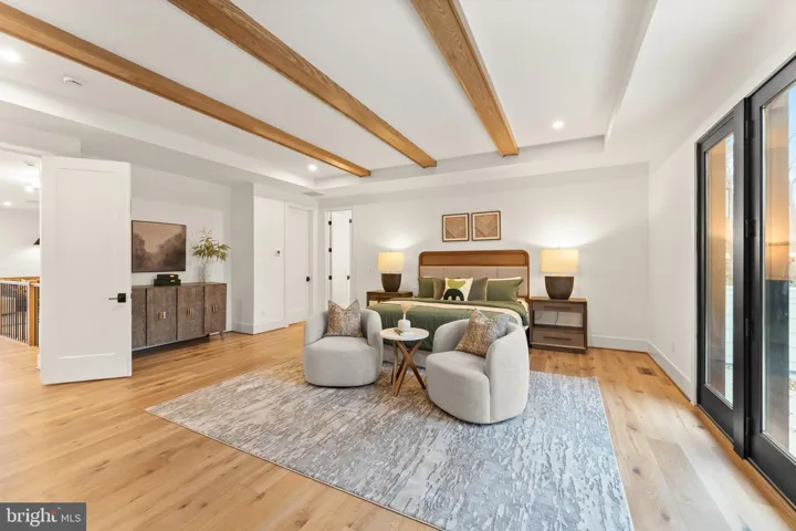 Upstairs, a thoughtfully designed loft with built-ins provides an additional living area ideal for work, homework, reading, or retreat. All secondary bedrooms enjoy private en-suite baths. The Owner’s Suite feels like a private sanctuary with its beamed ceiling, fully customized walk-in closet, and spa-inspired bath featuring a freestanding soaking tub and zero-threshold shower. A private rooftop terrace extends the suite outdoors, while a second terrace off the loft offers its own quiet escape.