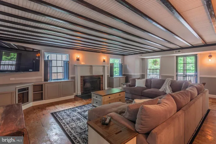 The home boasts a stunning, fully updated kitchen complete with center island, walk-in pantry, modern pendant and recessed lighting, stainless-steel appliances, and thoughtful design throughout. Natural light pours into the inviting sunroom and family room, highlighting the charming wood-beamed ceilings and scenic views from every window. Additional main-level office/den provides flexible space for work or leisure.