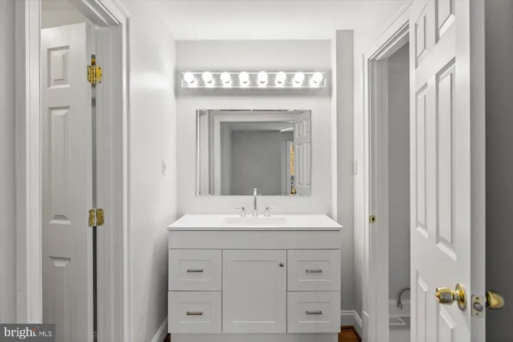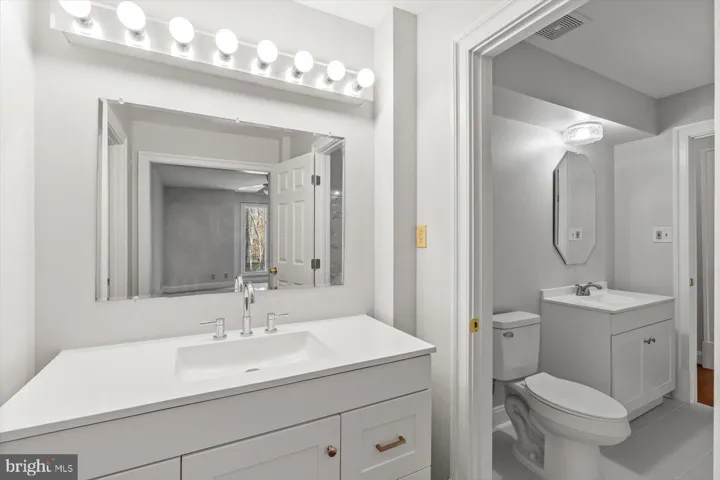 The main home features four generously-sized bedrooms and four beautifully renovated bathrooms. The master bedroom has his and her bathrooms and walk-in closets. A second bedroom/den has its own bath. A third and fourth bedroom with a new Jack and Jill bath are located at the other end of the home. The large eat-in kitchen has cherry cabinets with granite countertops. The spacious basement offers unlimited potential, featuring three multi-use rooms, a full bath, and three large storage areas, one of which includes workbenches and electrical outlets, perfect for hobbies or projects.