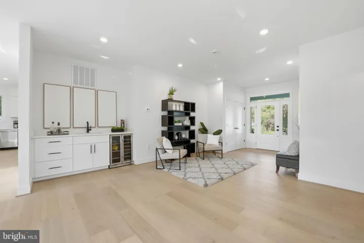 Step inside to a bright and airy open floor plan, highlighted by soaring 9-foot ceilings and abundant natural light. The main level boasts a stunning modern kitchen with an expansive mitered-edge island, high-end stainless steel appliances, a pot filler, walk-in pantry, and elegant designer cabinetry—perfect for both everyday meals and hosting gatherings. Across from the kitchen, the family room features a cozy gas fireplace and a wet bar with a beverage center, creating an inviting space for entertaining. A main-level bedroom with a private en suite bath offers ideal guest accommodations or a comfortable home office.
