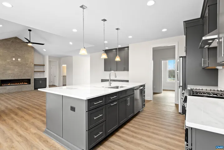 Luxury Proposed Detached Ranch home available in the Langdon Woods subdivision of Albemarle County VA. This to-be-built new construction home at Lot 12 Langdon Woods Dr, Dyke, VA is listed for $1,295,000. The home will feature 3 bedrooms and 2 full bathrooms, with an estimated total finished square footage of 2,760 on the first floor above ground, and a total potential square footage of 6,050 including the full walk-out unfinished basement, a 530 sq ft attached garage, and exterior finishes of Fiber Cement and Stone. Built by True Living with a projected completion date one year after breaking ground, the property spans 4.14 acres with a stream, access to a 3 acre pond, and is surrounded on 3 sides by a 30 acre conservation easement and stream buffer that cannot be built on and is available for any owner of Lot 12 to have access to use for trails, nature watching, or otherwise recreational means. Lot 12 is a very private and quiet lot. Well is already drilled and produces 20 gallons per minute. Septic drain field lines are staked out and soil tested and approved. Contact your agent for details on the two-contract requirement (one for land and one for home) and the construction loan/deposit requirements.,Granite Counter,Maple Cabinets,Fireplace in Living Room
