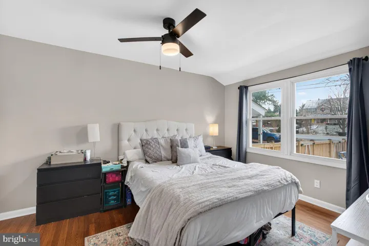 The main level offers an open, light-filled living room featuring a cozy wood-burning fireplace and refinished original hardwood floors. A newly added owner’s suite provides a wonderful retreat with a full ensuite bath, walk-in closet with built-ins, and a spacious layout that feels like a true primary getaway. On the opposite side of the home, you’ll find two additional bedrooms—both with hardwood floors, ceiling fans, and closets with built-ins. The updated hall bath features stylish wallpaper, wainscoting, a beautiful tub surround, and LVP flooring.