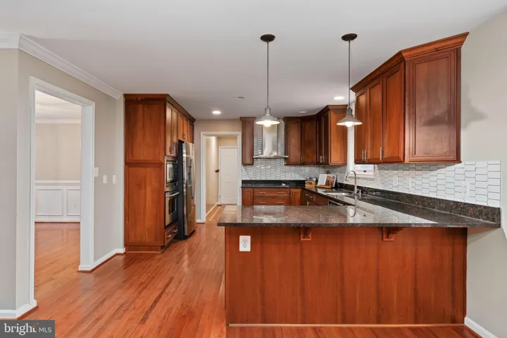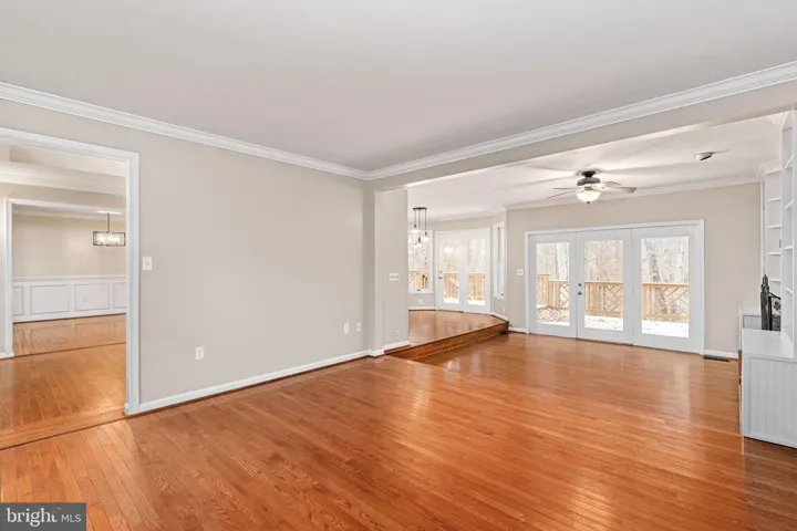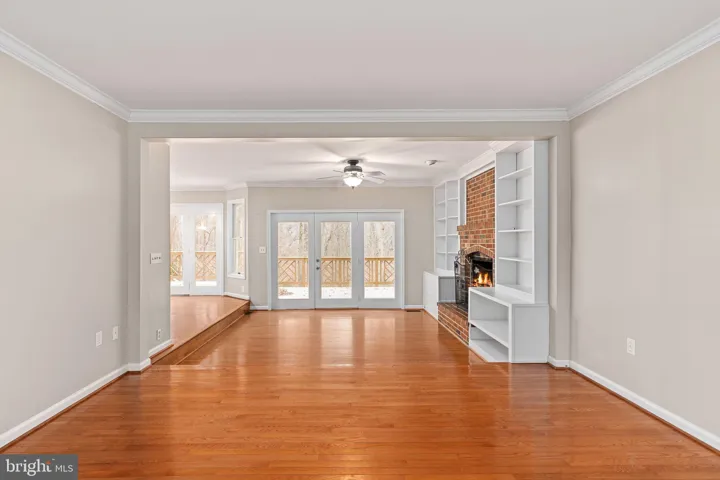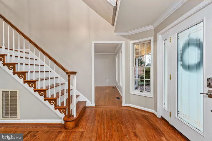 As you enter, the two story foyer, living room, formal dining room, gourmet kitchen, and breakfast room, create an open and welcoming flow. The kitchen has been recently updated with modern finishes, a stylish tile backsplash, and updated appliances, which opens beautifully to both the breakfast room and the living room. The living room features built-ins on either side of the wood-burning fireplace along with French doors leading to the rear deck, which overlooks the 1.3-acre natural setting. Hardwood floors flow throughout the home (with the exception of the bedrooms, and basement/recreation room), as well as crown molding accents which add classic charm.