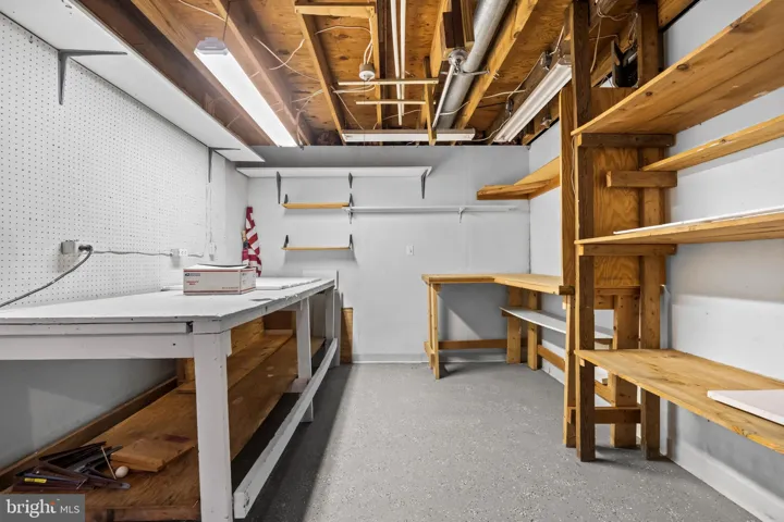 The fully finished basement offers a versatile recreation room, an additional half bath, and excellent storage space with a dedicated workshop area. The main-level family room opens to a screened-in porch, perfect for relaxing or entertaining. The outdoor space includes a beautifully landscaped yard with a brick patio and walkway, stone retaining wall, play area, and a storage shed.