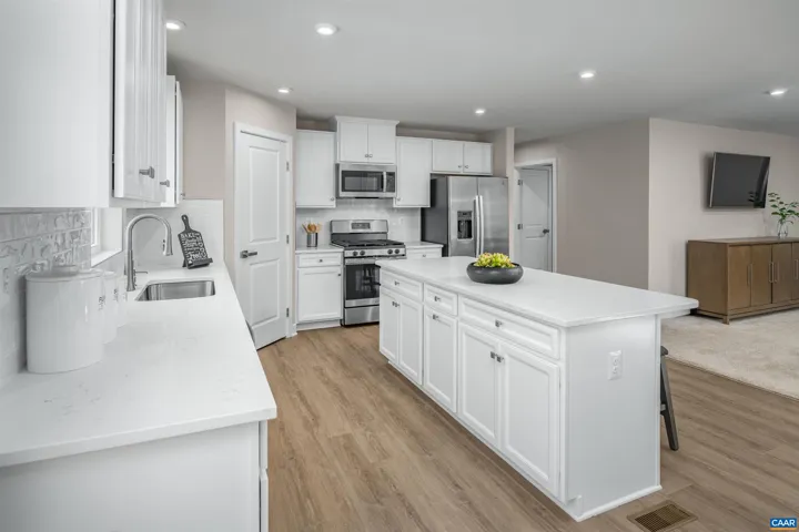 The Eden Cay floorplan featuring main level living backing to private wooded tree line for Spring 26′ move in! This Eden Cay boasts an open bright design with a 2-car garage, 3 bedrooms, 2 baths, and a spacious owner’s suite with private bath & walk-in closet. Enjoy a gourmet kitchen with walk in pantry, upgraded cabinetry, spacious kitchen island, granite counters & stainless kitchen appliances all included! Creekside Ranches is an amenity filled community featuring 2 pools, 2 pickleball courts, clubhouse with fitness center, playground, walking trails and more! Creekside Ranches is located in a peaceful setting with beautiful mountain views, a maintenance-free lifestyle with lawn & landscaping included all only 10 minutes from Charlottesville! Every new home in Creekside is tested, inspected & HERS scored by a third-party energy consultant and a third-party inspector. Don’t wait! Schedule your visit today and secure your new home and $10,000 in savings!,Granite Counter,Maple Cabinets