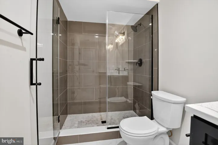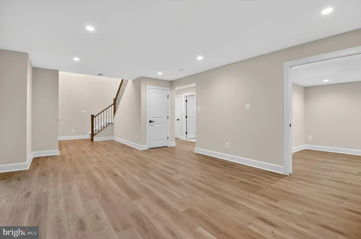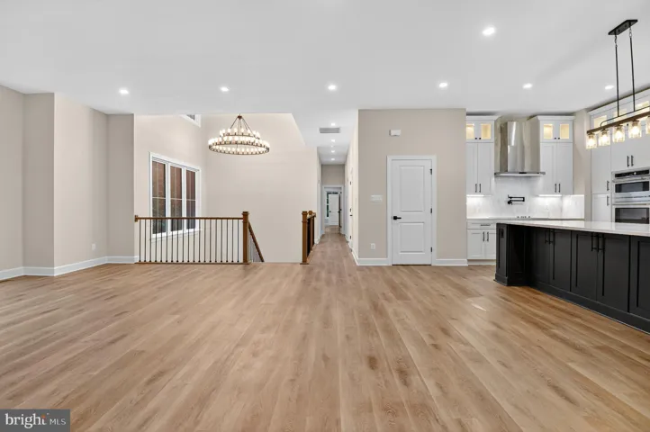 Inside, a spacious lower-level foyer highlighted by a statement circular chandelier sets the tone for the light-filled layout. Upstairs, the open-concept living and dining room flows seamlessly into a chef’s kitchen featuring illuminated luxury cabinetry, GE Café Series appliances, and an approx. 43 sqft island with seating—an ideal centerpiece for entertaining.